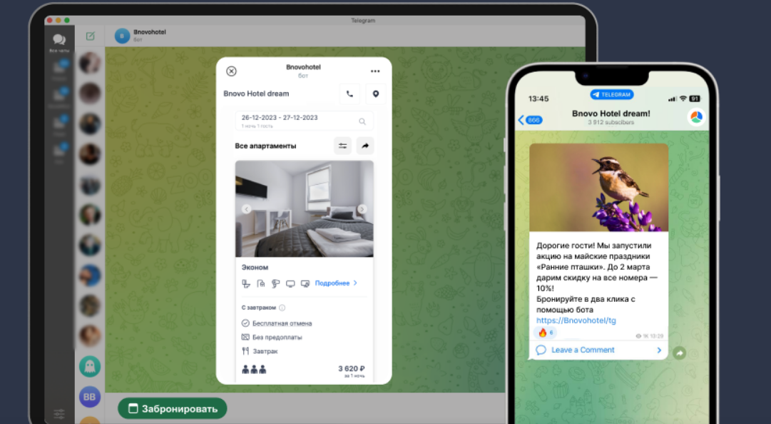 Модуль легко встраивается в сайт, соцсети, мессенджеры и карты. Гость может сразу выбрать дату, номер, дополнительные услуги и оплатить проживание в несколько кликов. Это не только сокращает путь клиента, но и помогает отелю получать больше прямых бронирований – важный фактор для небольших гостиниц и сетей апартаментов.